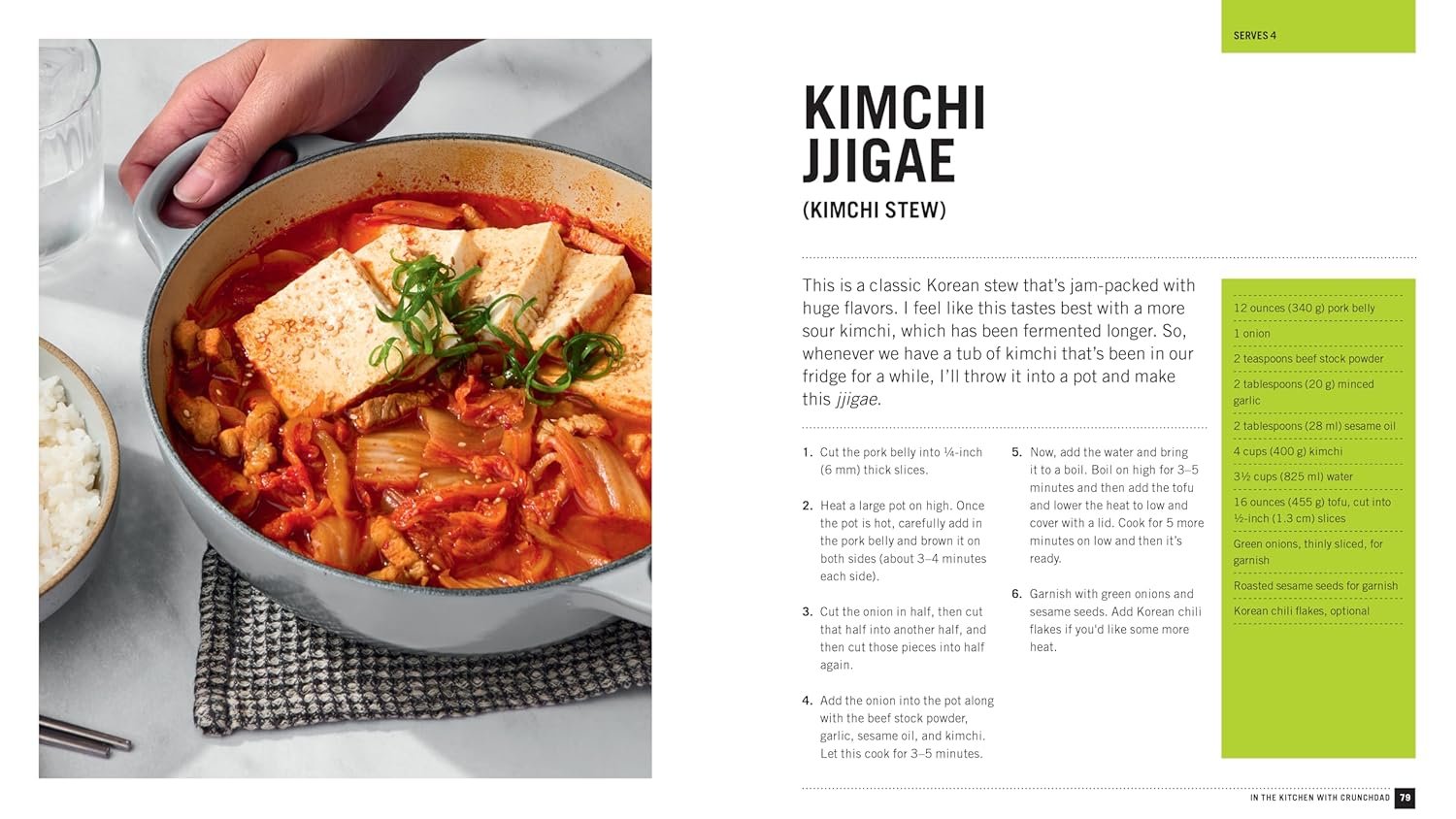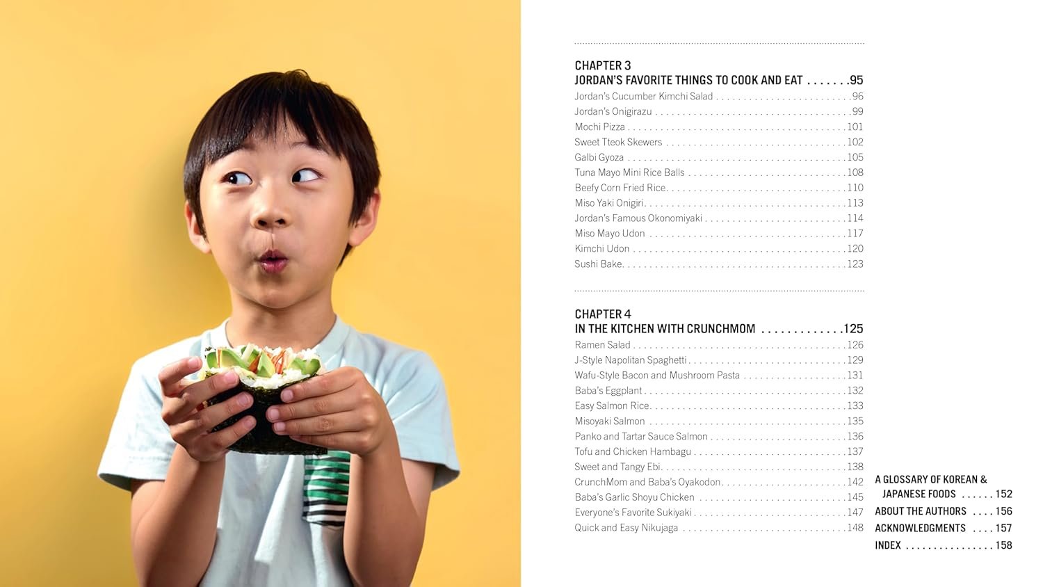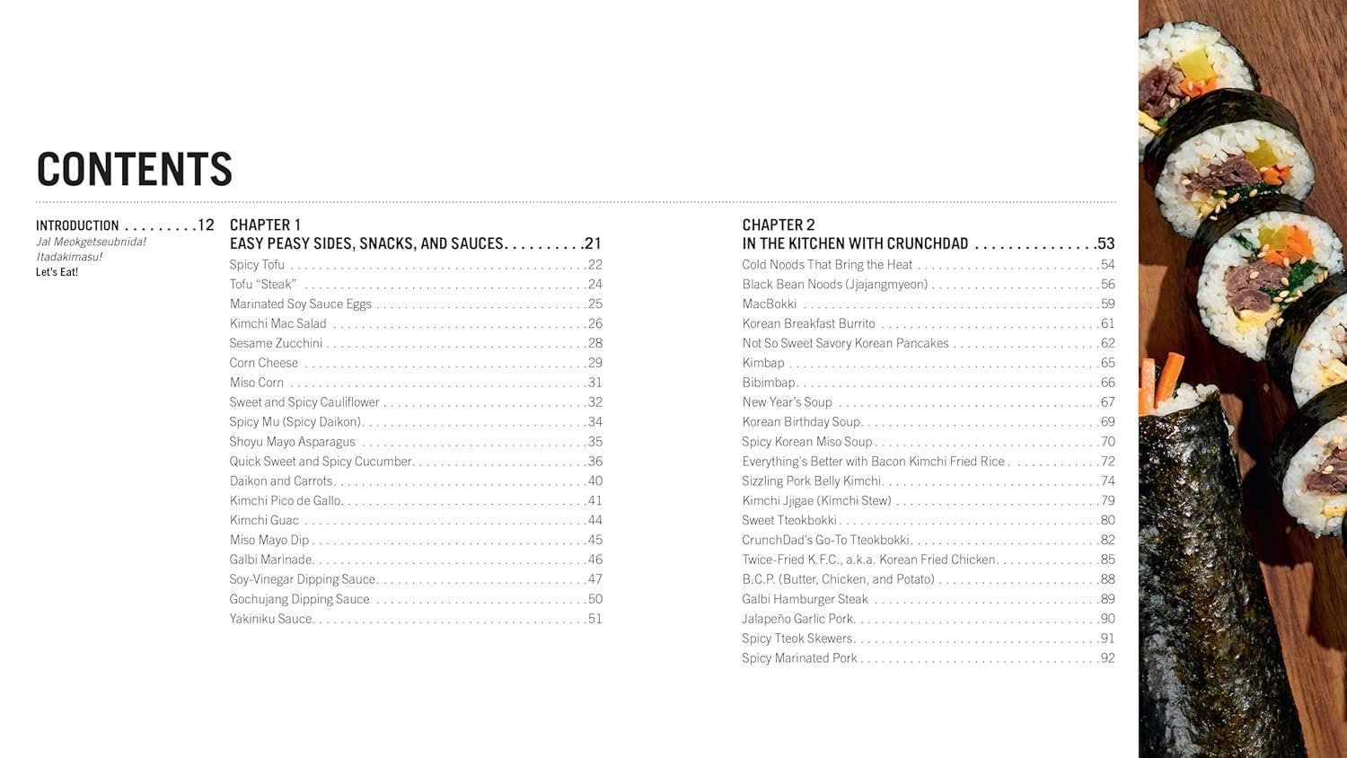 Hundreds of millions of people have had fun watching the playful kid-and-dad duo, Jordan and Jeff Kim—better known as The CrunchBros—make, eat, and enjoy amazing Japanese- and Korean-style meals and treats on TikTok, YouTube, and Instagram. With 65 easy recipes, you too can cook and eat like them with their easy-to-make recipes in this bright and colorful book.