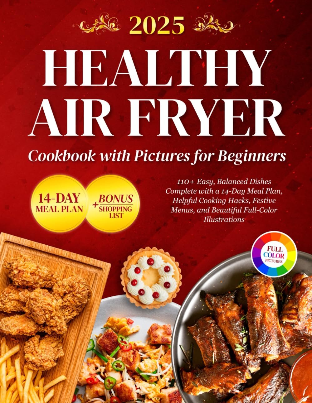 Healthy Air Fryer Cookbook with Pictures for Beginners: 110+ Easy, Balanced Dishes Complete with a 14-Day Meal Plan, Helpful Cooking Hacks, Festive Menus, and Beautiful Full-Color Illustrations
