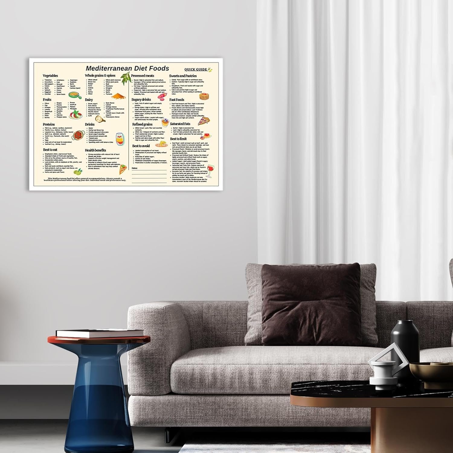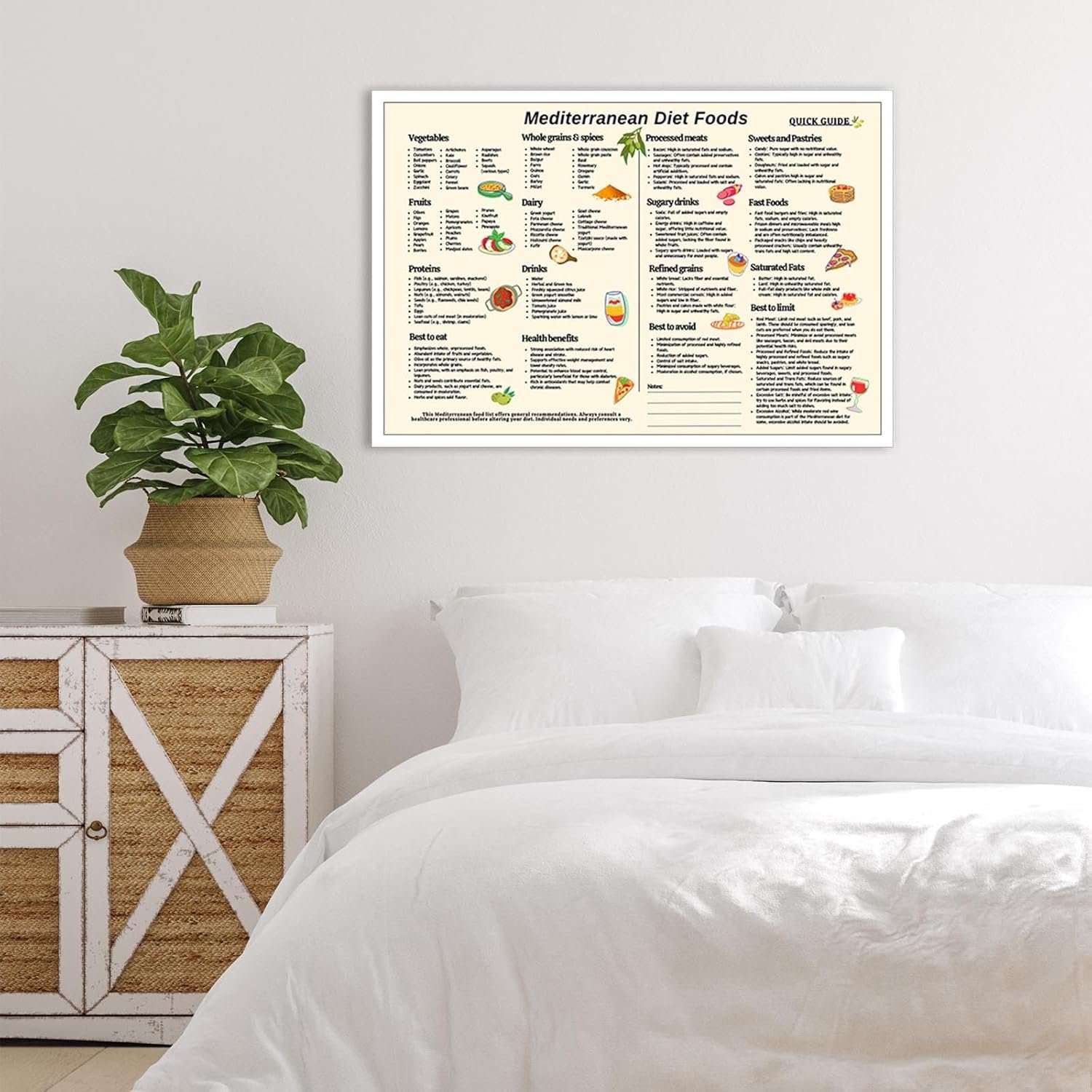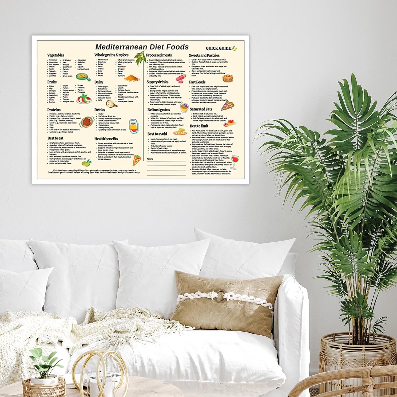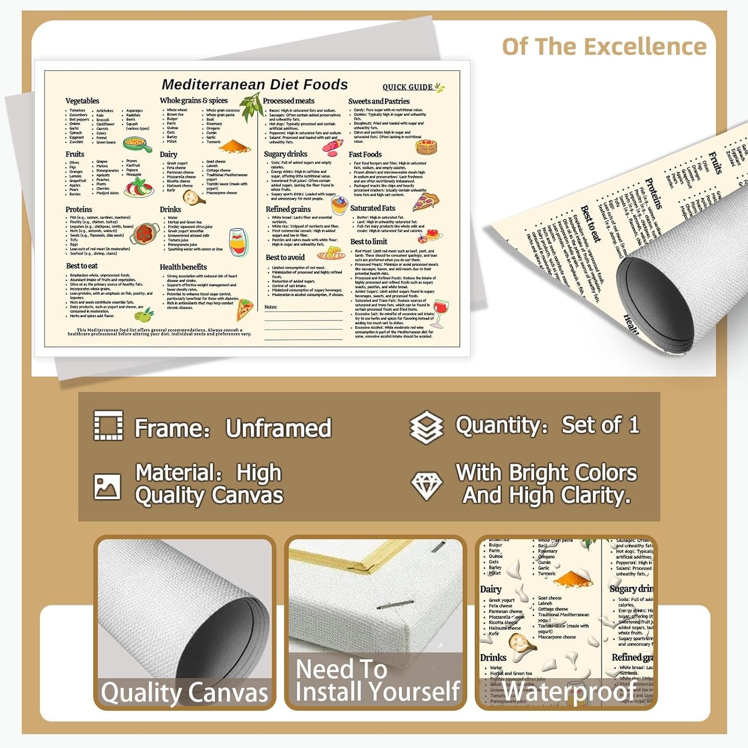 Mediterranean Diet Meal Plan Chart – Healthy Food Guide Poster – Art Canvas For Kitchen & Dining Room – 8x12in Unframed